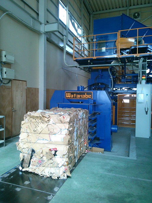 当社では古紙ベーラーを導入する事で、雑誌・新聞・ダンボール・古着などの古紙を回収し、再生を行っています。