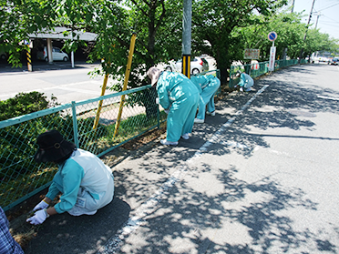 ホーメックスでは、さまざまな地域清掃活動を通じて地域の皆様への感謝を提供します。地域の皆様との友好な関係を継続するために、始業前15分、本社敷地内および隣接する国道沿いなどの清掃活動を実施しております。