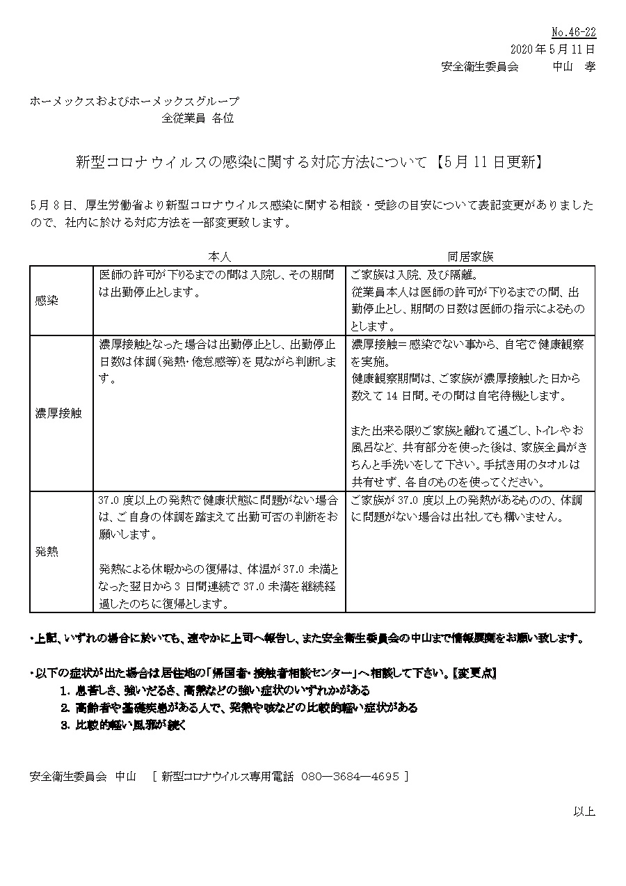新型コロナウィルスの感染に関する対応方法について(2020年5月11日時点)