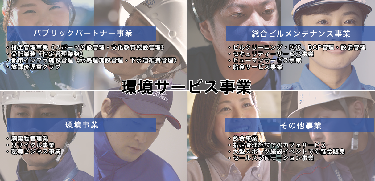 海外への事業展開、オフィス街、商業施設などに展開するレストラン事業、イベントや建物維持管理に利用する空撮事業、広告や展示会、イベント企画などのセールス・プロモーションを展開しています。