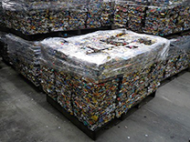 アルミ、スチールなどを選別し、それぞれをプレスして、インゴット化します。