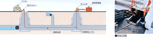 ウインチでSZライナーを下水道管に引込みます。