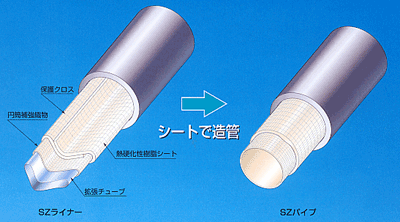 管内に形成されたSZパイプは、優れた耐久性、耐薬品性を有しています。