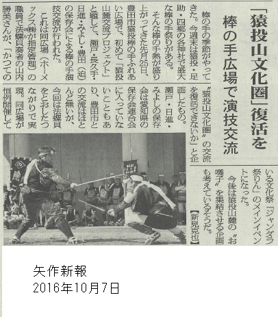 - お知らせ 矢作新報掲載・「棒の手広場で演技交流」