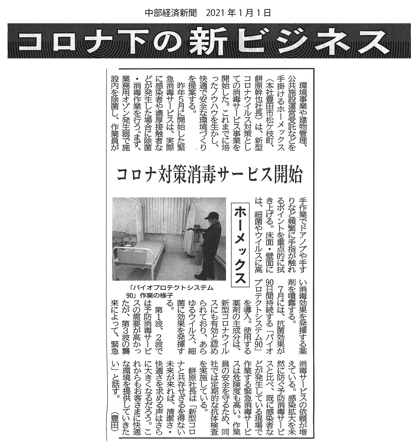 - メディア情報 中部経済新聞/コロナ下の新ビジネス