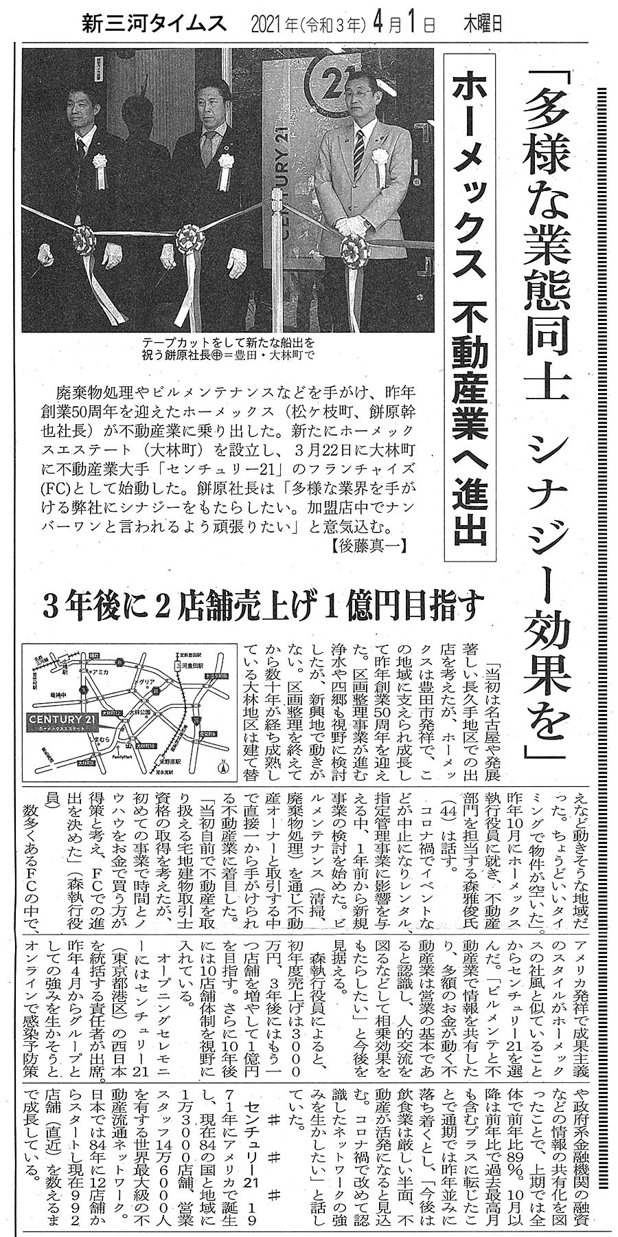 - メディア情報 新三河タイムス/ホーメックス不動産業へ進出